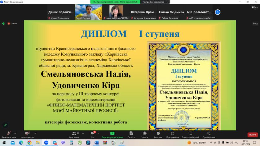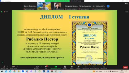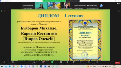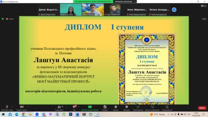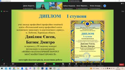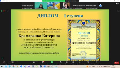 Дипломами ІІ ступеня за перемогу конкурсі фотоколажів та відеоматеріалів учасників урочисто нагородили доктор педагогічних наук, професор, заступник директора з наукової роботи Інституту професійної освіти Національної академії педагогічних наук України Микола Пригодій та доктор педагогічних наук, професор, завідувачка лабораторії науково-методичного супроводу підготовки фахівців у коледжах і технікумах Інституту професійної освіти Національної академії педагогічних наук України Олена Тітова.