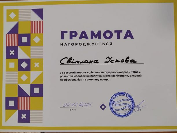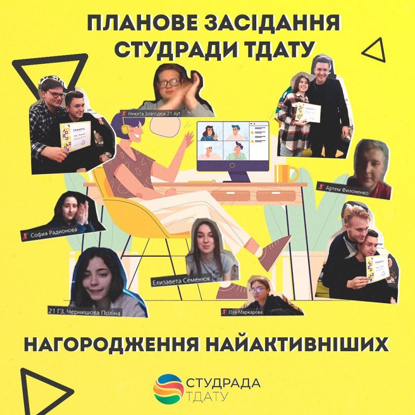 Протягом жовтня відбулось багато різноманітних заходів. За підсумками роботи, проведеною за місяць, голова Студради ТДАТУ Микита Семенов нагородив грамотами найактивніших учасників студентської ради за досягнення, сумлінну працю та високий професіоналізм.