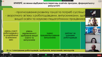 Для удосконалення освітніх програм здійснюється постійний моніторинг ринку праці та ринку освітніх послуг, залучення роботодавців до формування вимог щодо компетентностей випускників та визначення змісту вищої освіти, опитування випускників та їх роботодавців щодо якості освіти та освітнього процесу.