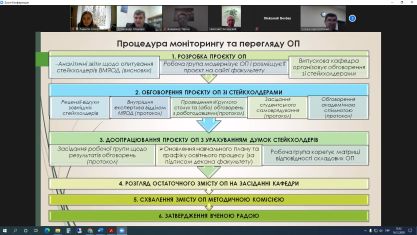 Заступники директорів з навчальної роботи були ознайомлені з презентацією щодо функціонування системи внутрішнього забезпечення в університеті, а особливо стосовно питань якості освітніх програм, та останніх напрацювань університету в цьому напрямку. Представниками університету було акцентовано увагу на переліку і змістовному наповненні основних процедур і заходів, які повинні виконуватись для підвищення якості передвищої освіти в коледжах. А саме: