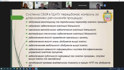 16 грудня 2020 року проректор з науково-педагогічної роботи Олександр Ломейко та завідувачка відділу моніторингу якості освітньої діяльності Радміла Скляр провели нараду з заступниками директорів з навчальної роботи відокремлених структурних підрозділів Таврійського державного агротехнологічного університету імені Дмитра Моторного: «Мелітопольський фаховий коледж», «Бердянський фаховий коледж», «Василівський фаховий коледж», «Ногайський фаховий коледж», «Новокаховський фаховий коледж» та «Оріхівський фаховий коледж» щодо удосконалення функціонування системи внутрішнього забезпечення якості в їх закладах. Нарада проводилась на платформі Zoom.