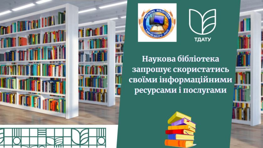 Наукова бібліотека Таврійського державного агротехнологічного університету імені Дмитра Моторного надає доступ до своїх ресурсів: