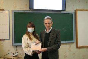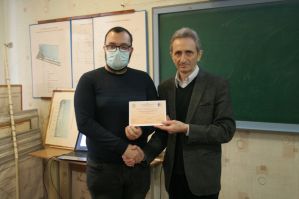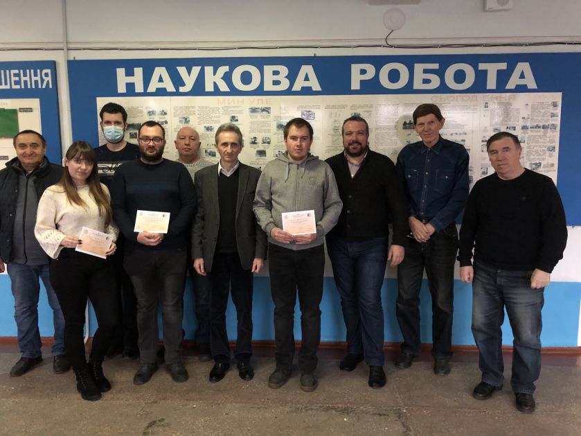 Студент 25 МБАІ гр. Владислав Моторін з доповіддю «Розроблення колісного рушія гібридного типу», Олександр Галігузов 23 МБАІ гр. з доповіддю «Особливості проектування систем зрошення зерняткових плодових культур» і Аліна Торопова 23 МБАІ гр., яким були вручені сертифікати учасника науково-технічної конференції.