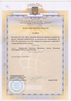5. Свідоцтво про реєстрацію авторського права на твір №109914. Дата реєстрації 08 листопада 2021 р. №с202108035. Літературний письмовий твір наукового характеру «ЗВІТ виконання програми виробничих випробувань «Hydroflow Industrial (test)» на пластинчастому теплообміннику № 1 (ПТО №1) (паросилового) цеху № 18 центральної компресорної станції ПрАТ «Запорізький абразив» / О.В.Бережецький, В.М. Кюрчев, С.І.Мовчан // ПрАТ «Запоріжабразивний комбінат»: Запоріжжя, 2021. – 21 с.