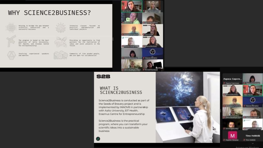 Програма SCIENCE2BUSINESS проводиться в межах проєкту Seeds of Bravery та реалізується INNOV8 у партнерстві з Aalto University, EIT Health, Erasmus Center for Entrepreneurship.