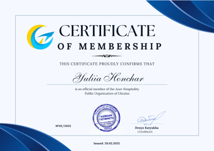 Членство викладачів кафедри в організації відкриває нові можливості для налагодження співпраці між освітою та практикою, дозволяє брати участь у спільних проєктах, конференціях та ініціативах, спрямованих на розвиток туристичної галузі Приазовського регіону. Це також важливий крок до підвищення якості підготовки студентів, завдяки залученню до реального професійного середовища.