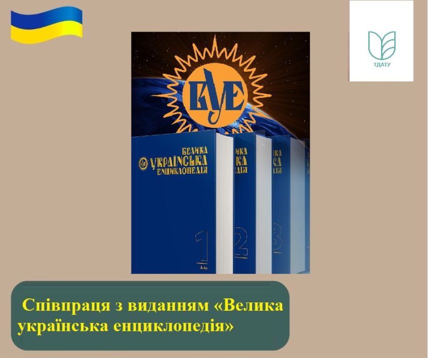 Науковці, які виявлять бажання співпрацювати з «Великою українською енциклопедією», просимо написати відповідальній за оперативну взаємодію ТДАТУ з видавництвом – е-пошту olga.bilotska@tsatu.edu.u