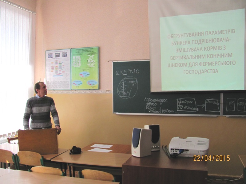 Інж. Дем’яненко Д.В. За висловом присутнього на конференції д.т.н., професора Надикта В.Т., можна відмітити як найкращу доповідь ст. викл. Дерези С.В. «Обґрунтування параметрів бункера подрібнювача-змішувача кормів з вертикальним конічним шнеком для фермерського господарства».