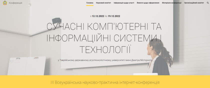 З 12 по 19 грудня на базі кафедри «Комп’ютерні науки» Таврійського державного агротехнологічного університету імені Дмитра Моторного відбулася ІІІ Всеукраїнська науково-практична Інтернет-конференція «Сучасні комп’ютерні та інформаційні системи і технології».