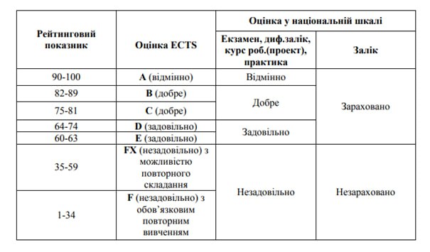 ШКАЛА ОЦІНЮВАННЯ ЗА СИСТЕМОЮ ECTS