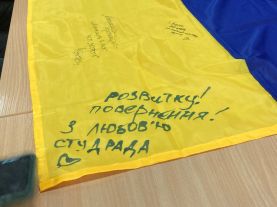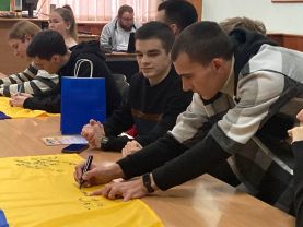 Друга частина заходу проходила у дружньому родинному колі кожного університету. Студенти Таврійського ДАТУ приєдналися до створення величезного та символічного розпису нашого символу гордості – прапору України! Кожен, хто бажав взяти участь у розписі прапору, мав унікальну можливість додати краплинку в цей надзвичайний твір, написавши побажання своєму університетові та місту Мелітополь. Кожен малюнок, кожен слід від ручки та маркера став своєрідним виразом нашої об’єднаної підтримки та любові до України!