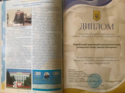 Один з найкращих закладів вищої освіти – Таврійський державний агротехнологічний університет імені Дмитра Моторного представлено на шпальтах видання «Україна. Науковці й освітяни: незламні у війні».