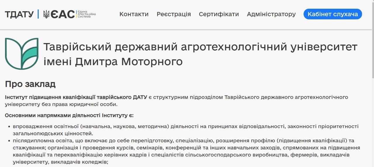 Наразі співробітники Навчально-наукового центру спільно із завідувачем кафедри комп’ютерних наук Сергієм ШАРОВИМ працюють в напрямку співпраці з представниками Єдиної Атестаційної Системи (ЄАС). Планується, що співробітники Університету матимуть можливість швидкої та легкої реєстрації на планові заходи з підвищення кваліфікації, що будуть організовані та проведені науково-педагогічними працівниками ТДАТУ. Усі сертифікати, що отримуватимуть слухачі, автоматично будуть згенеровані в системі ТДАТУ ЄАС, а також доступні в електронних персональних кабінетах слухачів. Після тестування системи буде заплановано захід для науково-педагогічних працівників ТДАТУ, де кожен із учасників після прослуховування семінару з питань цифрової безпеки в сучасному просторі, отримає сертифікат, згенерований в автоматичному режимі.