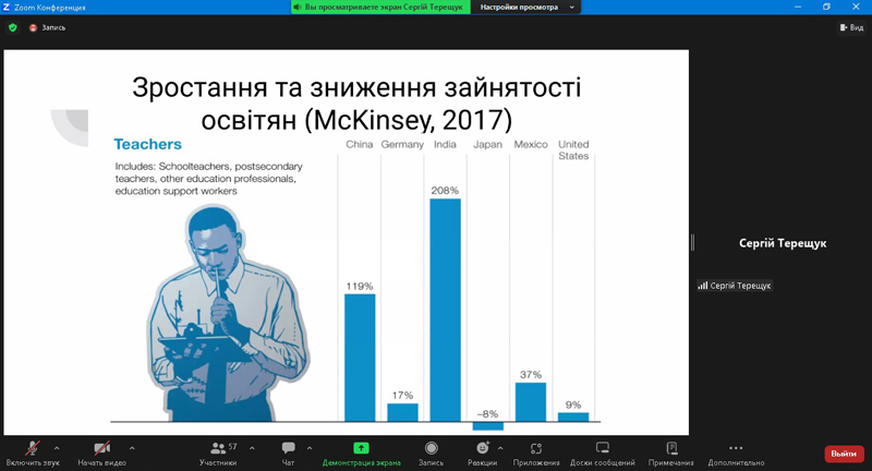 18 жовтня 2023 р. на онлайн-платформі ZOOM, на базі кафедри комп’ютерних наук, для науково-педагогічних працівників та здобувачів вищої освіти Таврійського державного агротехнологічного університету імені Дмитра Моторного відбувся цікавий захід на тему «Використання штучного інтелекту в освіті: практичні кейси». Спікером заходу виступив ТЕРЕЩУК С.І. – доктор педагогічних наук, професор кафедри фізики та інтегративних технологій навчання природничих наук Уманського державного педагогічного університету імені Павла Тичини.