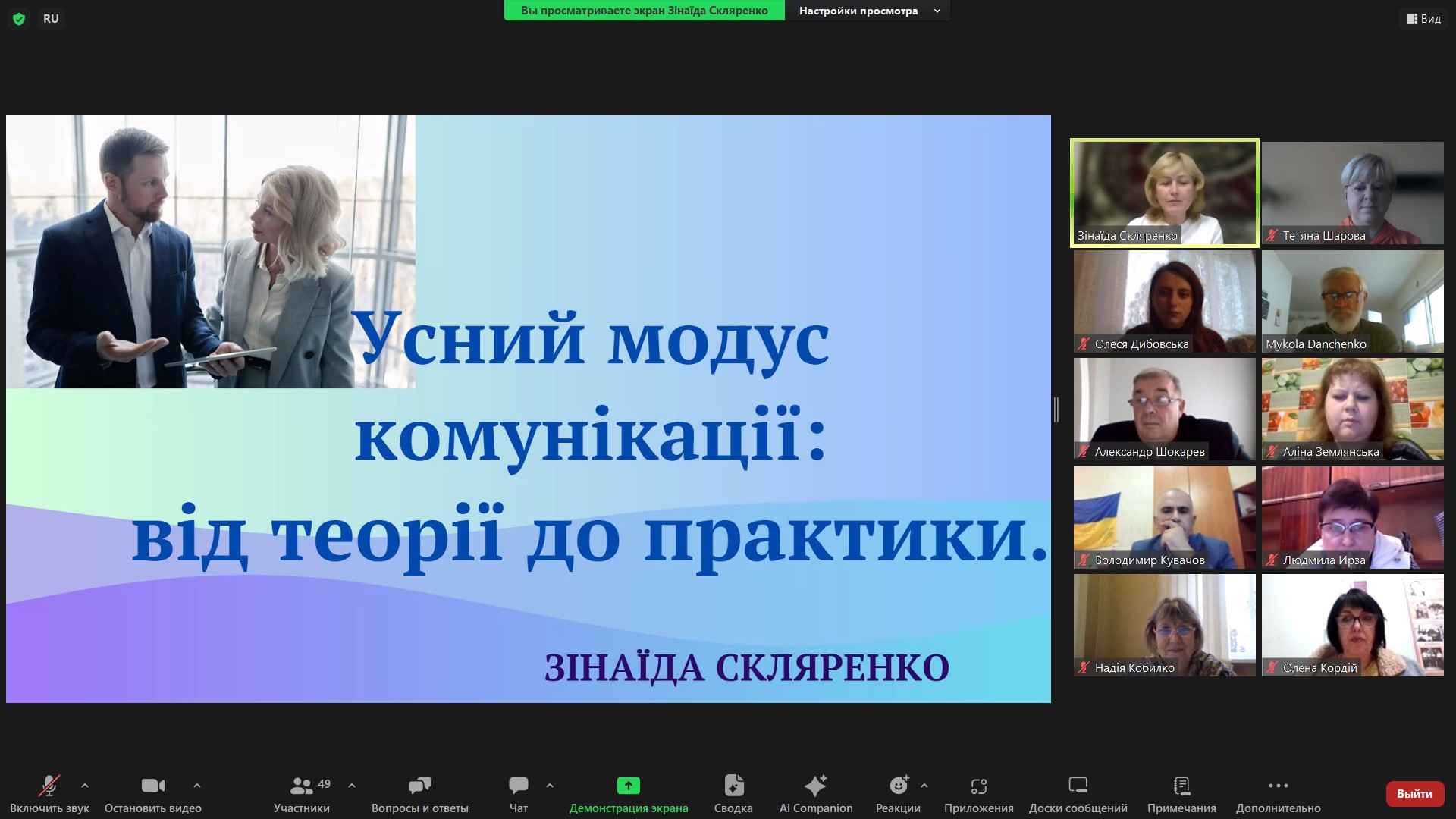 Зінаїда СКЛЯРЕНКО: «Усний модус комунікації: від теорії до практики».