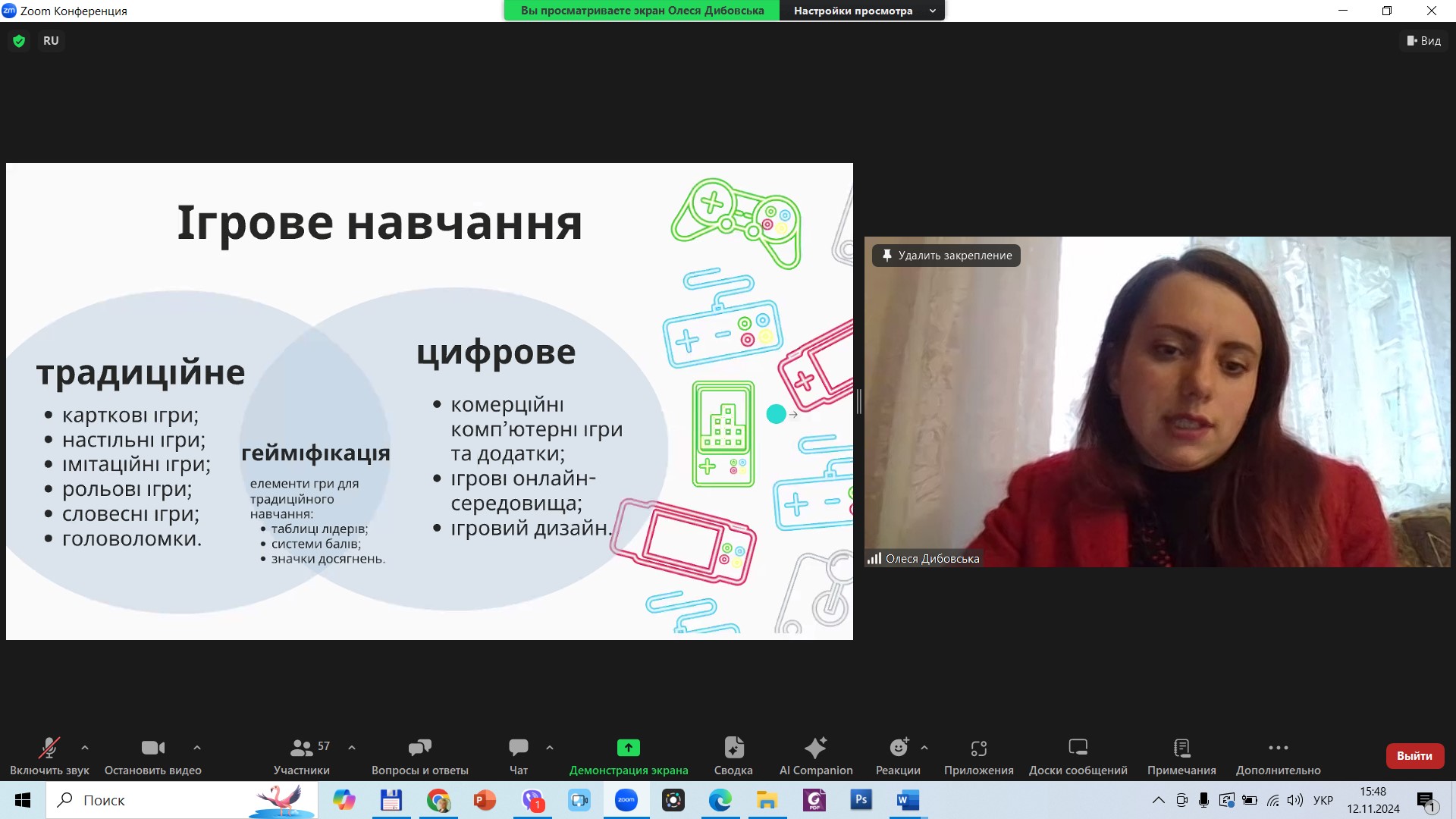 Олеся Дибовська – кандидат філологічних наук, заступник директора з навчально-виховної роботи Початкової школи імені Софії Русової Івано-Франківської міської ради – представила інноваційний підхід до корекції мовних помилок, запропонувавши використовувати ігрові форми навчання. Вона пояснила, як інтерактивні вправи та ігри можуть сприяти кращому засвоєнню правил мови, водночас роблячи процес навчання цікавим і захопливим. Зокрема, було продемонстровано кілька ігор, які допомагають викорінити типові помилки у вимові та написанні слів, їхньому використанні.
