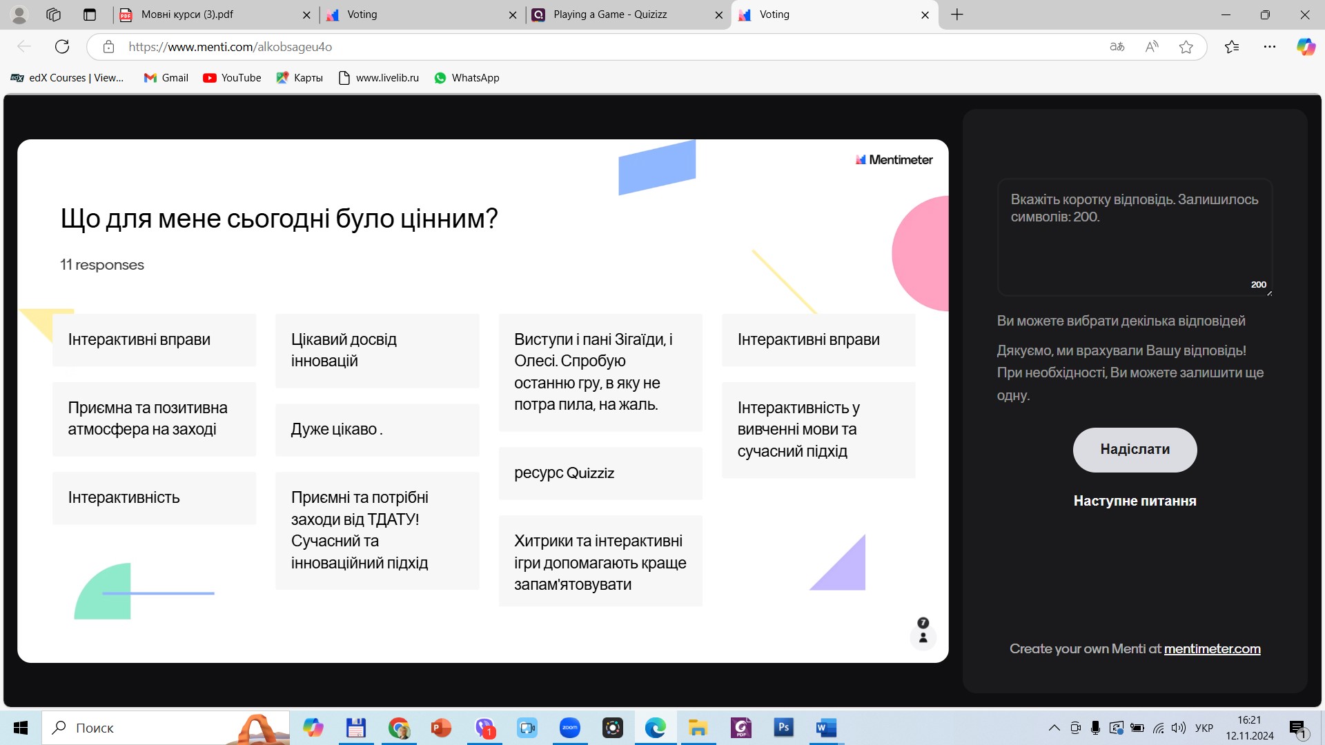 Всі учасники заходу отримали задоволення від інтерактивних вправ, запропонованих під час практикуму. Такий підхід створив сприятливу атмосферу для активної участі та обміну думками. Викладачі та науковці відзначили, що ігрові методики та інтерактивні завдання допомогли їм краще засвоїти матеріал і закріпити знання про особливості сучасної української мови.