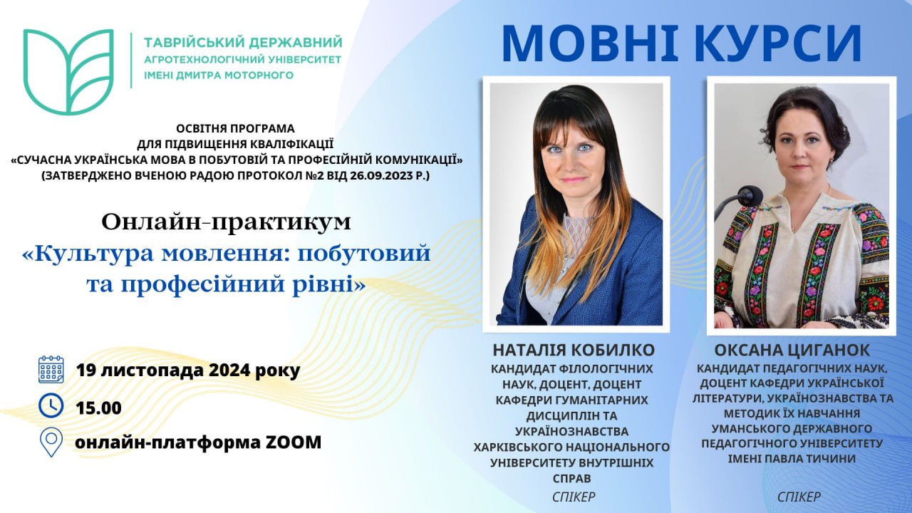 на мовний курс за освітньою програмою підвищення кваліфікації «Сучасна українська мова в побутовій та професійній комунікації»,