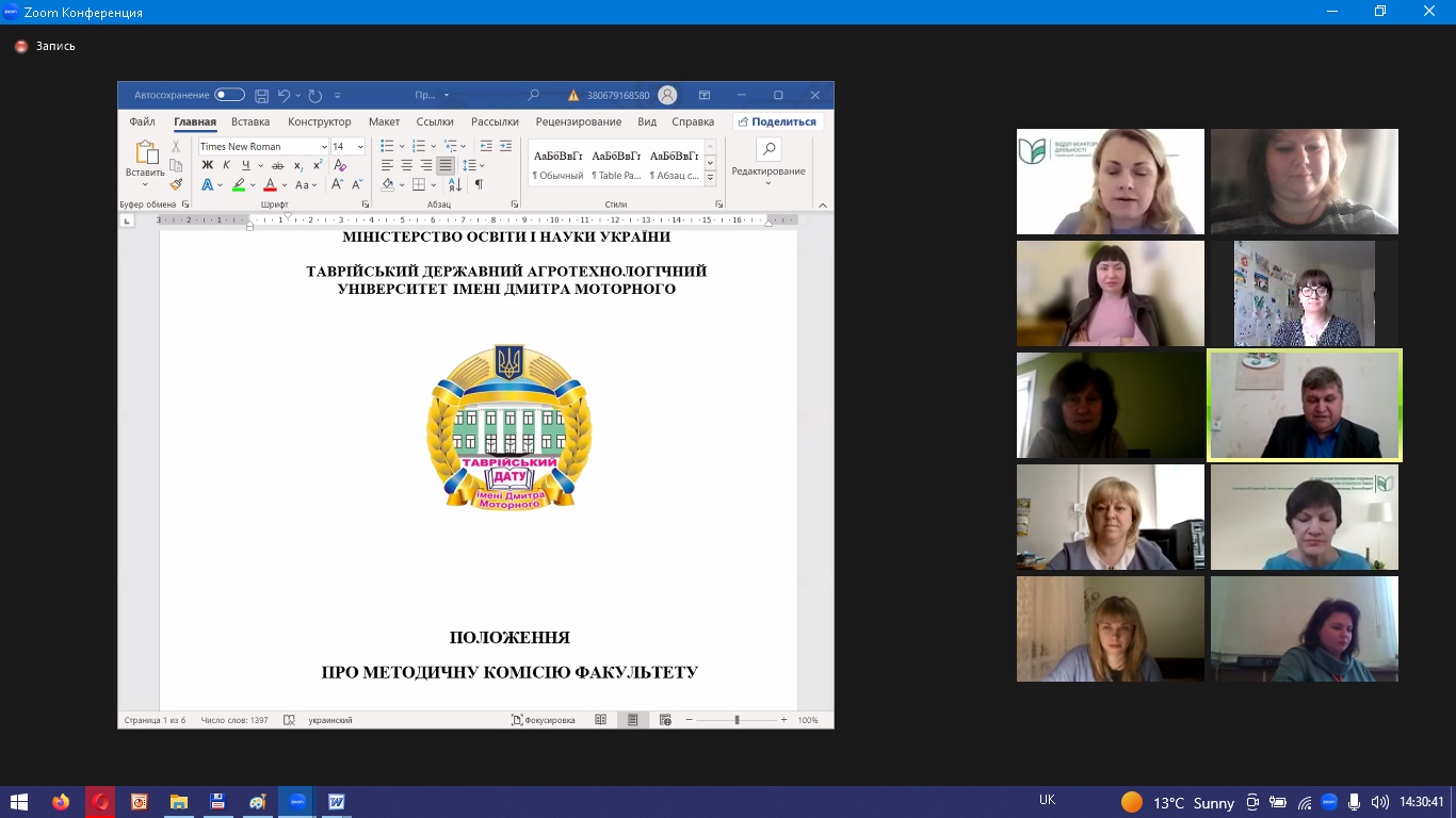 25 квітня 2023 р. відбулося планове засідання Науково-методичної ради Таврійського державного агротехнологічного університету імені Дмитра Моторного. Основними питаннями, що виносились на розгляд, були забезпечення якості освіти та оновлення нормативної бази освітнього процесу в університеті.