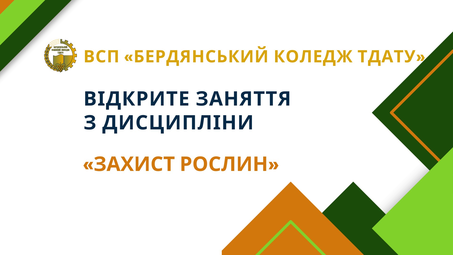Новини з коледжів. У ВСП “Бердянський фаховий коледж ТДАТУ” відбулось відкрите заняття з дисципліни «Захист рослин» на тему: «Шкідники і хвороби закритого ґрунту»