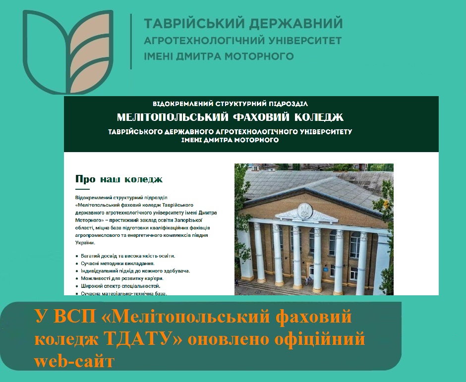Новини з коледжів. У ВСП «Мелітопольський фаховий коледж ТДАТУ» оновлено офіційний web-сайт