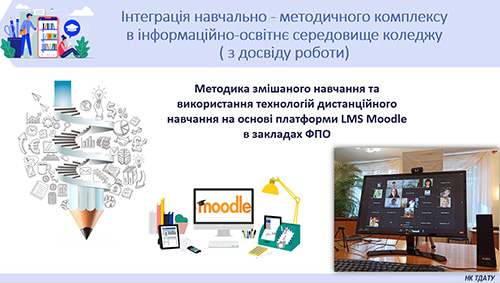 Методисти коледжу Наталія Граборенко та Олексій Брага виступили спікерами на курсах підвищення кваліфікації й поділилися досвідом впровадження інноваційної діяльності педагогів ВСП «Новокаховський фаховий коледж ТДАТУ». Наталія Граборенко презентувала питання інтеграції навчально-методичного комплексу дисципліни в інформаційно-освітнє середовище коледжу. Олексій Брага практично продемонстрував методику змішаного навчання та використання технологій дистанційного навчання на основі платформи LMS Moodle у коледжі.