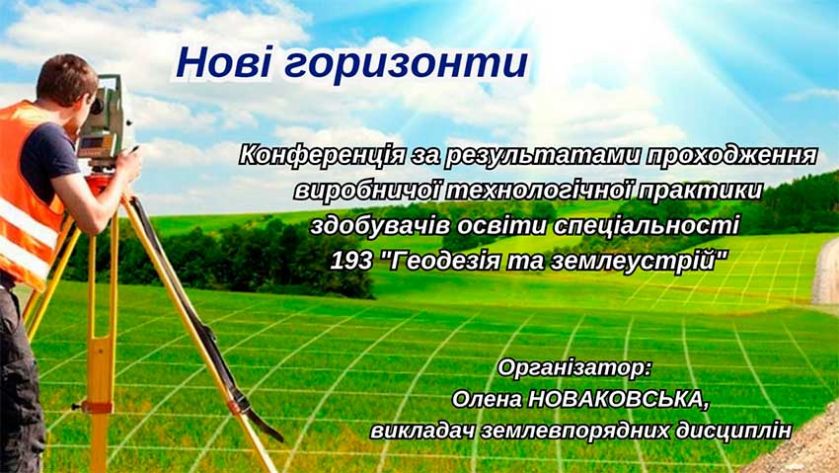 В рамках проведення тижня циклової комісії землевпорядних, юридичних та економічних дисциплін відбулася Конференція за результатами проходження виробничої технологічної практики «Нові горизонти», в роботі якої взяли участь студенти, викладачі й керівники практики від виробництва.