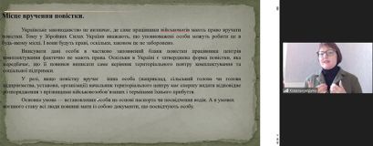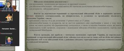 11 жовтня 2023 року в рамках проведення тижня циклової комісії землевпорядних, юридичних та економічних дисциплін викладачем юридичних дисциплін коледжу, кандидатом юридичних наук, адвокатом Іриною Ковальчук було проведено вебінар на тему «Мобілізація: від вручення повістки до отримання мобілізаційного розпорядження. Особливості військового обліку жінок» для працівників та студентів коледжу.
