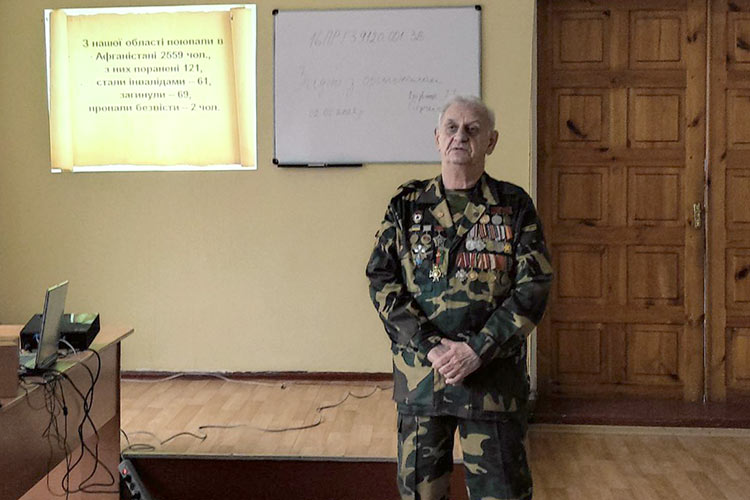 Наталія Ільницька ознайомила студентів з історією країни та подіями, пов’язаними з ходом бойових дій. Ветеран Афганської війни Анатолій Галієв – безпосередній учасник війни в Афганістані навів приклади мужності, героїзму, людяності, дружньої підтримки солдат.