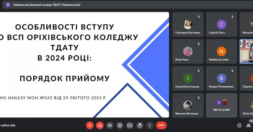 Днями у ВСП «Оріхівський фаховий коледж ТДАТУ» в рамках профорієнтаційної роботи відбулася онлайн-зустріч з абітурієнтами.