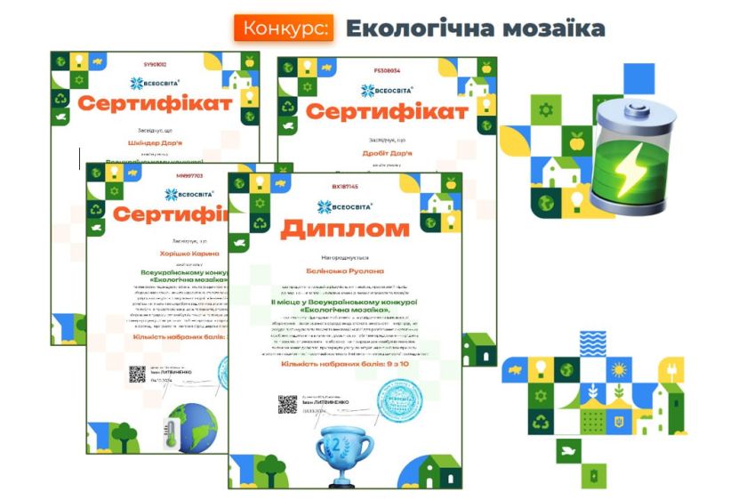 Розширити екологічну свідомість, розвивати критичне мислення, увагу, аналітичні здібності, кмітливість та креативність студентів допомагає участь у конкурсах. Викладач екології «Ногайський фаховий коледж ТДАТУ Олег Косенчук залучив здобувачів освіти до Всеукраїнського конкурсу від ТОВ Всеосвіта «Екологічна мозаїка».