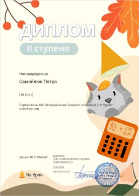 Петра Самойлюка, студента 14 групи — 2 місце з математики (викладач Мельник Т.В.).