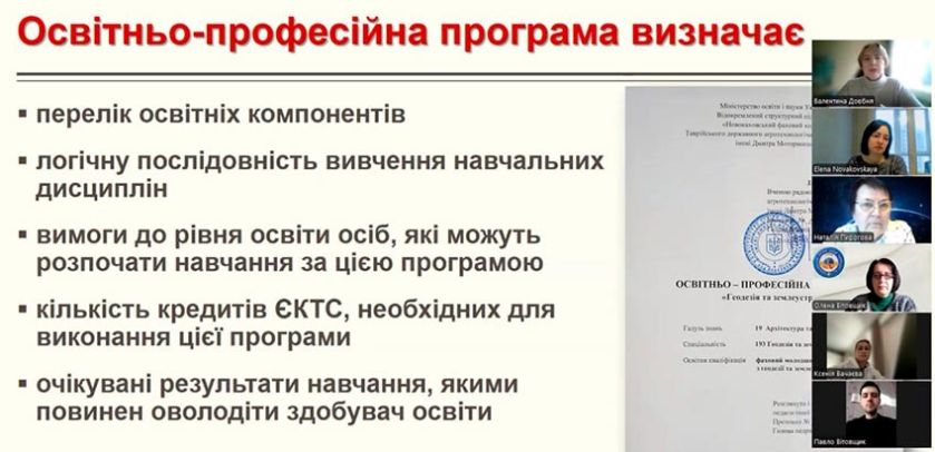 Днями відбулось засідання робочої групи з розробки та постійного розвитку освітньо-професійної програми «Геодезія та землеустрій», у якому взяли участь викладачі, залучені до її реалізації.