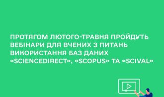 Компанія «Elsevier» планує провести протягом лютого-травня 2023 року серію вебінарів для вчених українською мовою, під час яких розглянуть питання, пов’язані з використанням баз даних «ScienceDirect», «Scopus» та аналітичного інструменту «SciVal».
