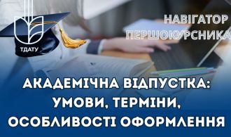 Шановні першокурсники, ми продовжуємо знайомити вас з особливостями освітнього процесу у ТДАТУ. Сьогодні ми надаємо пояснення вам щодо академічної відпустки.