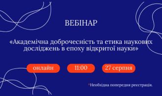 Компанії Clarivate з ДНТБ України запрошують на вебінар “Академічна доброчесність та етика наукових досліджень в епоху відкритої науки”, який відбудеться 27 серпня 11:00-12:30.