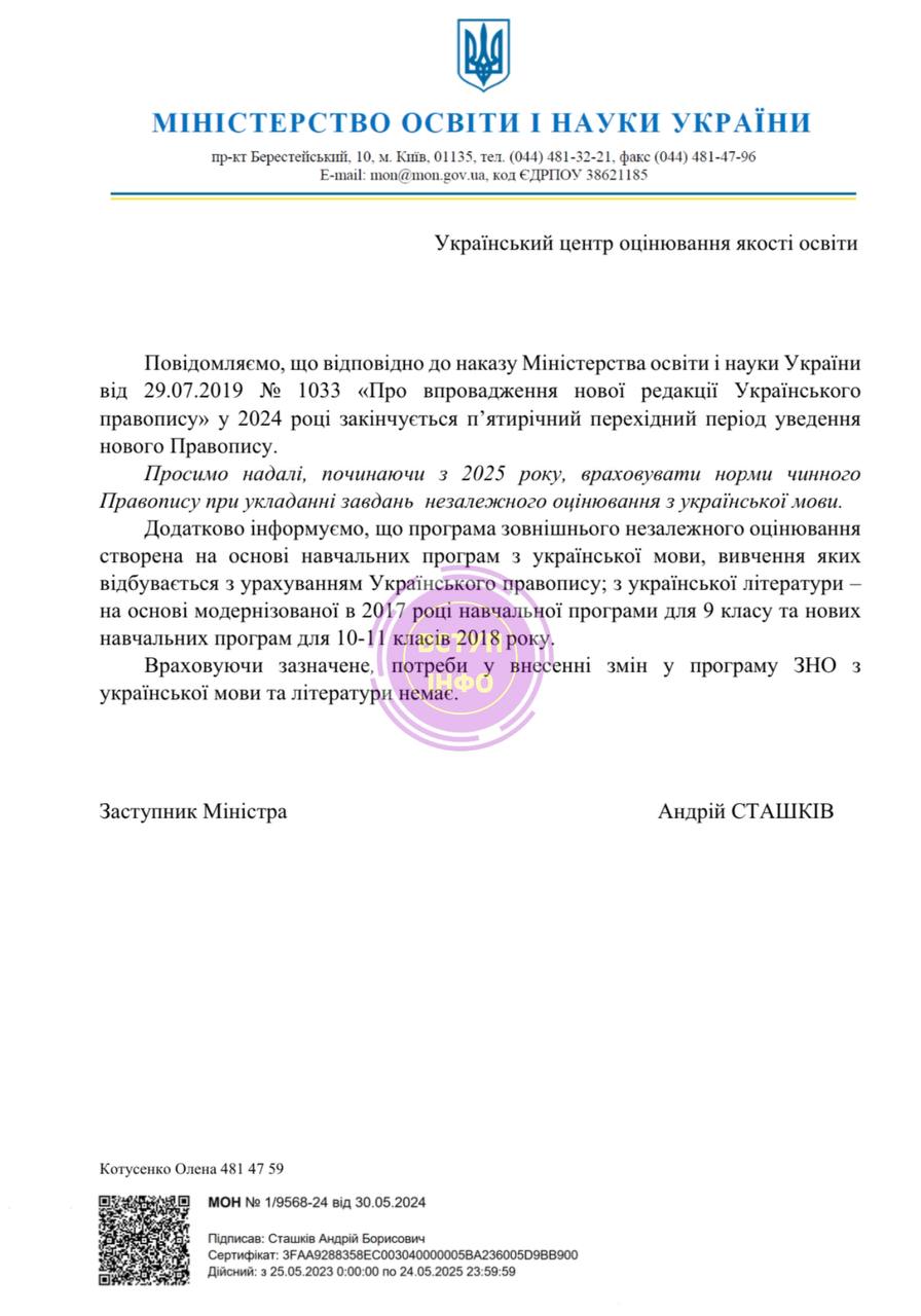 ОФІЦІЙНО! НАКАЗ МОН: із 2025 року НМТ з української мови буде виключно за новим правописом