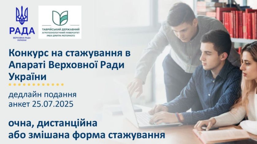 До уваги здобувачів вищої освіти! Оголошено конкурс на 6-місячне стажування в Апараті Верховної Ради України.
