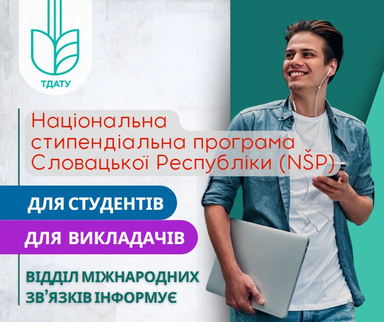 За інформацією Посольства Словацької Республіки в Україні, отриманою нотою від 29.09.2025 No VN 15140 / 2025 – UAVV (додається), Національною стипендіальною програмою Словацької Республіки (NŠP) оголошено про новий прийом заявок на навчання, дослідницьке, мистецьке та лекційне стажування у Словаччині протягом літнього семестру 2025/2026 академічного року.