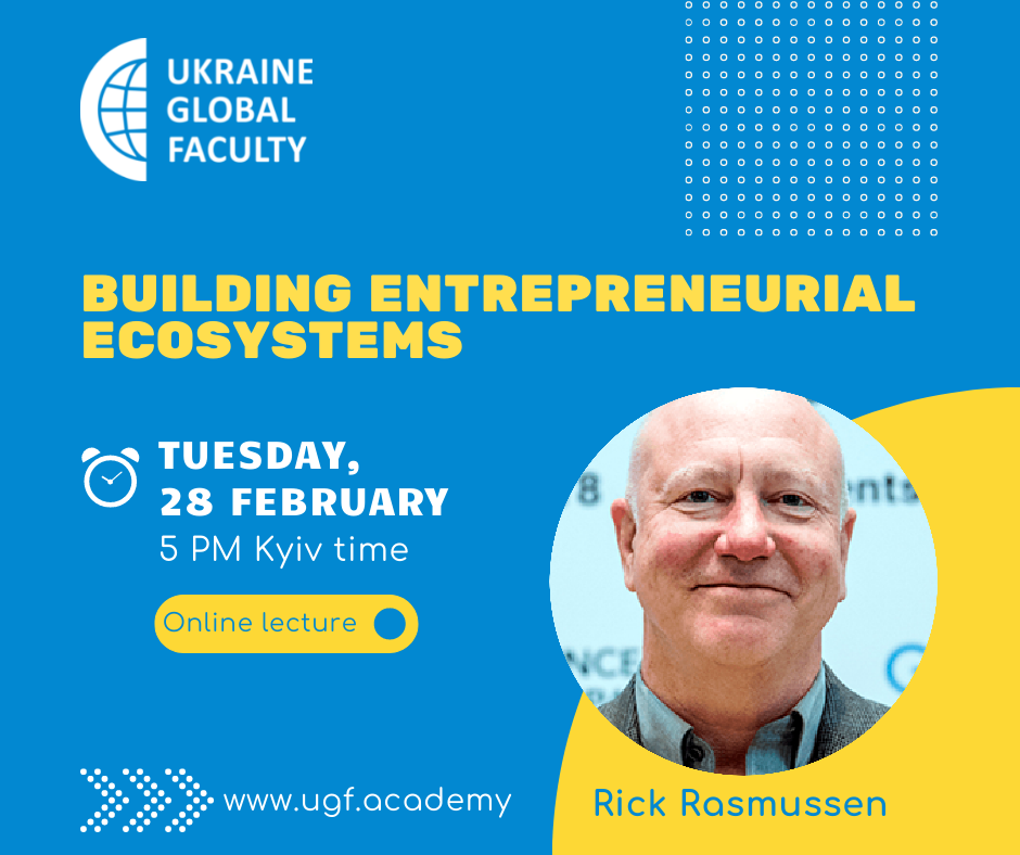 Онлайн-лекція експерта Центру підприємництва та технологій Сутарджа Інженерного коледжу Каліфорнійського університету Rick Rasmussen «Building Entrepreneurial Ecosystems»