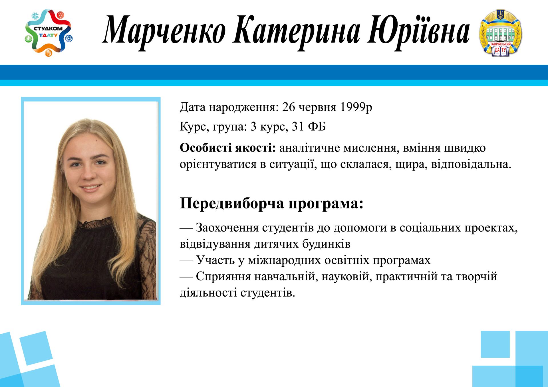 • Студентський омбудсмен ТДАТУ