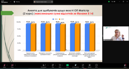 Наприкінці своє доповіді пані Радміла наголосила, що відділ моніторингу запрошує здобувачів вищої освіти взяти участь у щорічному дослідженні показників внутрішнього забезпечення якості освіти. Опитування є анонімним і триватиме до 26 травня 2025 року (детальніше…).