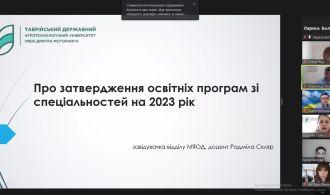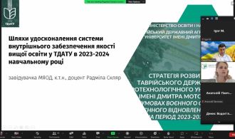 26 вересня 2023 року відбулось планове засідання Вченої ради Таврійського державного агротехнологічного університету імені Дмитра Моторного (детальніше…). Одним з питань на порядку денному було: «Шляхи удосконалення системи внутрішнього забезпечення якості вищої освіти в ТДАТУ в 2023-2024 навч. році», яке присутнім доповіла завідувачка відділу моніторингу, к.т.н., доцент Радміла Скляр. Пані Радміла в своїй доповіді зробила акцент […]