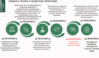 Відповідно до Положення про освітні програми в Таврійському державному агротехнологічному університеті імені Дмитра Моторного (затверджено Наказом ректора №10-ОД від 01.03.2023 р.) випускова кафедра організовує громадське обговорення освітньої програми із стейкхолдерами: роботодавцями, академічною спільнотою, здобувачами вищої освіти (факт проведення яких закріплюється документально), подає проєкт освітньої програми на експертизу до відділу моніторингу якості освітньої діяльності ТДАТУ. Відділ моніторингу якості освітньої […]
