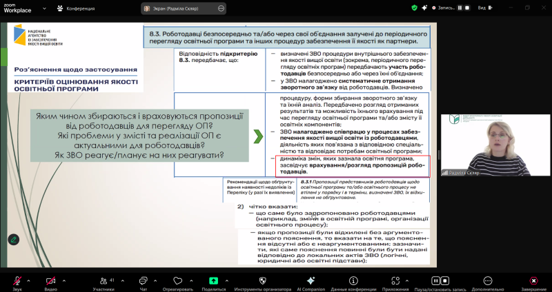 Про функціонування системи внутрішнього забезпечення якості вищої освіти в університеті: доповідь завідувачки відділу МЯОД Радміли Скляр