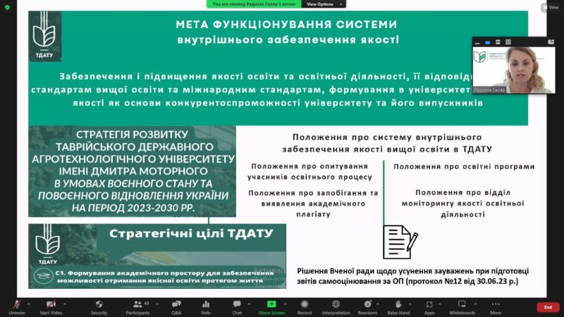 Розгляд питання “Шляхи удосконалення системи внутрішнього забезпечення якості вищої освіти у ТДАТУ в 2023-2024 навч. році” на Вченій раді ТДАТУ