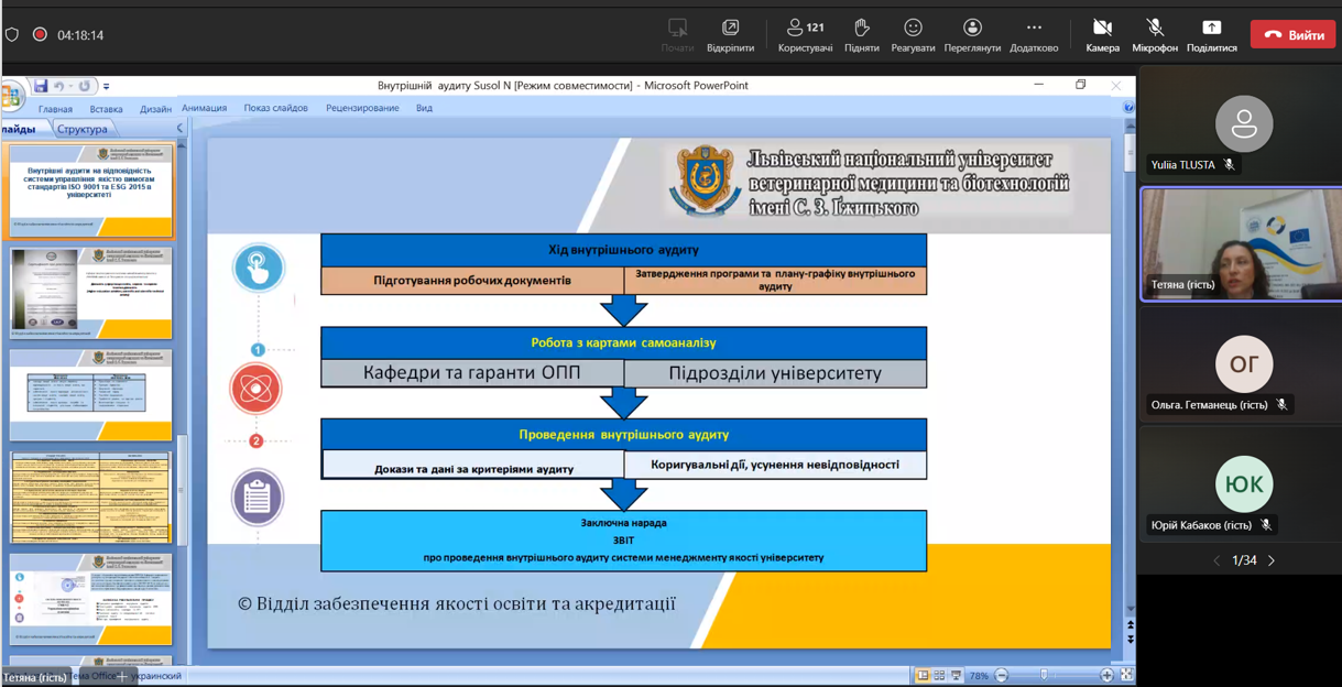 Про функціонування системи внутрішнього забезпечення якості вищої освіти в університеті: доповідь завідувачки відділу МЯОД Радміли Скляр