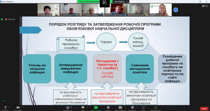Відповідно до оновленого Положення про робочі програми навчальних дисциплін (наказ №28-ОД від 27.04.23 р.), робочі програми обов’язкових навчальних дисциплін повинні пройти процедуру погодження з гарантами відповідних освітніх програм. Для підвищення ефективності цієї роботи створено єдину базу Google таблиць за всіма освітніми програмами університету.