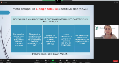Мета створення Google таблиці з освітньої програми – покращення функціонування системи внутрішнього забезпечення якості в ТДАТУ, а саме моніторинг: