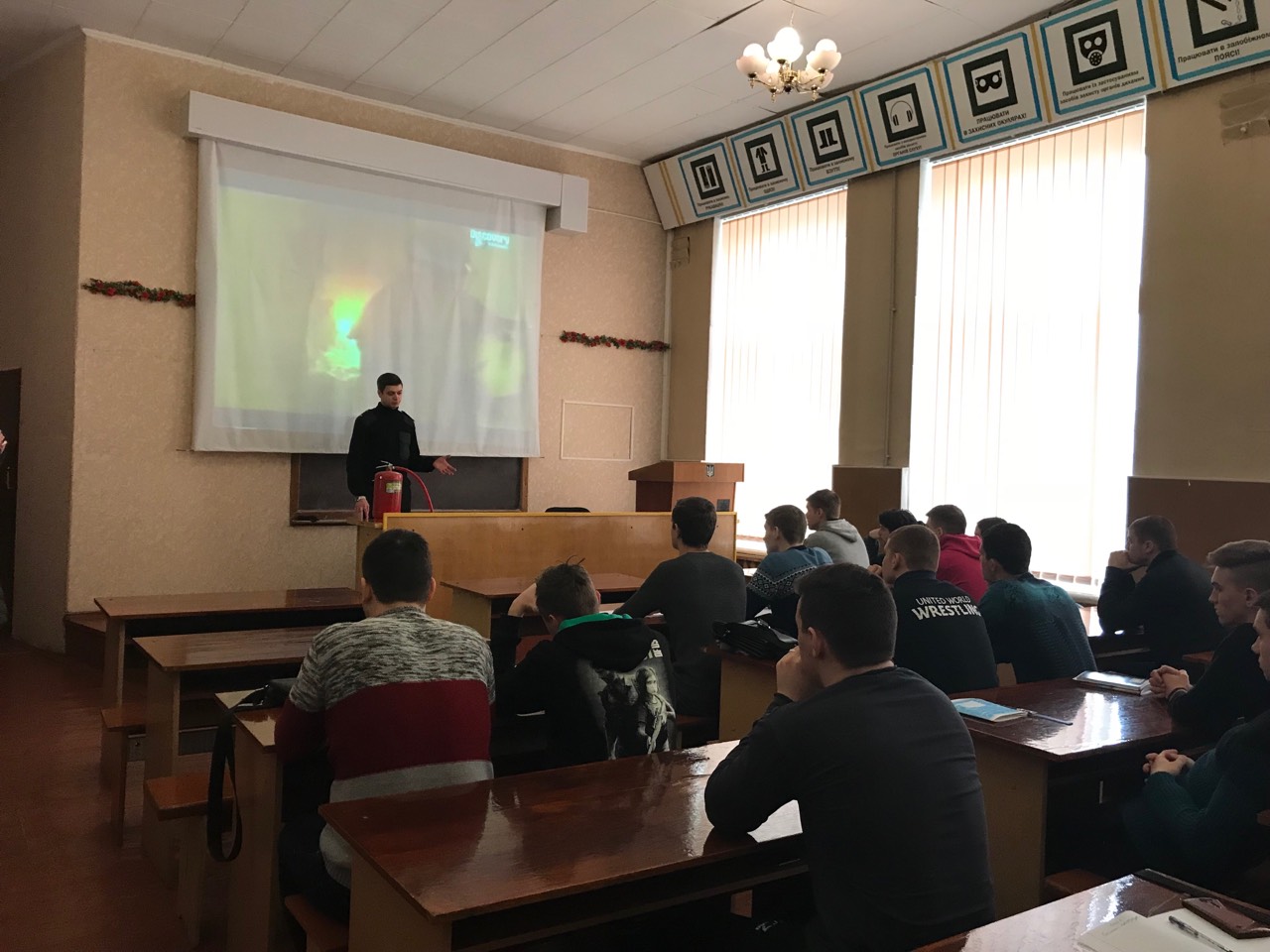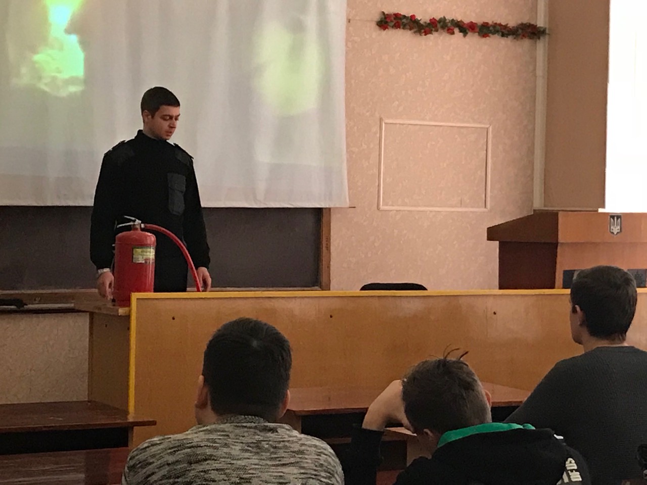 15 березня на кафедру цивільної безпеки завітали службовці ДСНС з метою ознайомити студентів з правилами поводження при пожежі. Також студентам була викладена інструкція щодо видів вогнегасників та правильного їхнього використання.